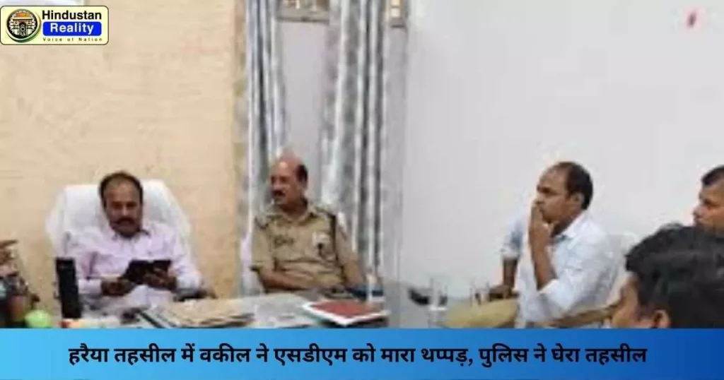 Basti News: बस्ती जिले की हरैया तहसील में एक वकील द्वारा एसडीएम पर थप्पड़ मारने की घटना के बाद माहौल तनावपूर्ण हो गया। आरोप है कि एक केस के फैसले से नाराज अधिवक्ता ने एसडीएम मनोज प्रकाश के साथ हाथापाई कर दी। इसके विरोध में वकीलों ने कामकाज ठप कर दिया है। पुलिस ने चार वकीलों पर गंभीर धाराओं में मुकदमा दर्ज किया है।