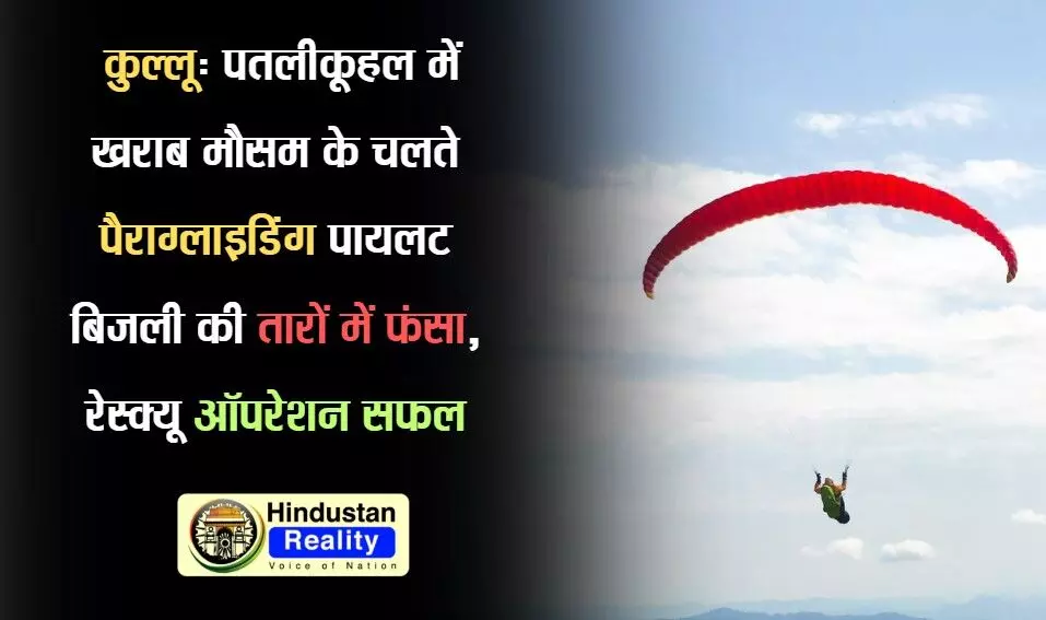 Kullu News | हिमाचल प्रदेश के जिला कुल्लू के पतलीकूहल में एक बड़ी अनहोनी होने से टल गयी. बीते दिन रविवार को 4 पैराग्लाइडरों पायलटों ने फ़्लाईन साइट से अपनी उडाल भरी लेकिन अचानक से मौसम खराब हो गया जिसके कारण वे अपनी दिशा भटक गए. तेज़्ज़ हवाएं भी चलने लगीं. खराब मौसम और तेज हवाओं के कारण चारों पायलट करीब आधे घंटे तक हवा में फंसे रहे. शिमला स्थित मौसम विज्ञान केंद्र ने भी ऊपर क्षेत्रों में मौसम के बदलने, तेज़ हवाओं और बारिश का अलर्ट जारी किया है.